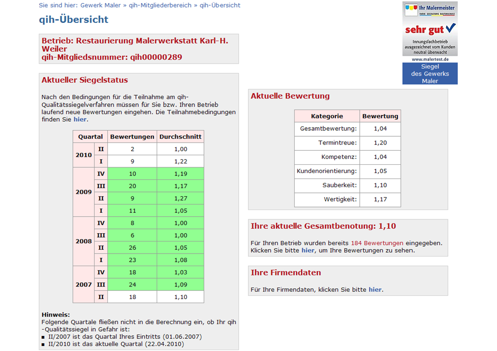 Weil wir gerne halten, was Sie sich von uns versprechen, haben wir in den letzten zweieinhalb Jahren von unseren Klienten folgende Bewertungen erhalten: